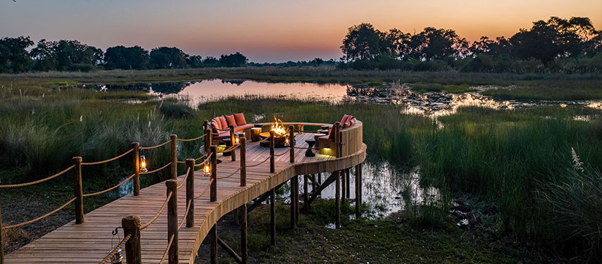 North Island Okavango safari camp is located on a private island in the Okavango Delta, surrounded by a mosaic of other islands all netted together by shining lagoons and transient channels. Between the floodplains, open savannah and woodlands, there is an abundance of wildlife everywhere.