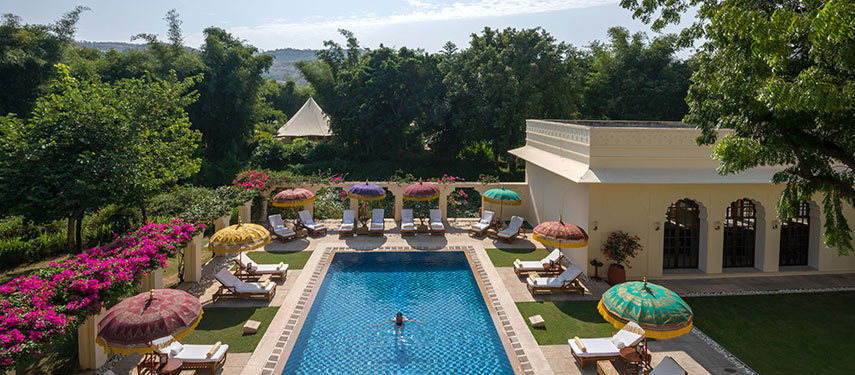 Located just outside Ranthambore National Park, on 20 acres of land covered with trees and plants, lies the picture perfect and luxurious Oberoi Vanyavilas.