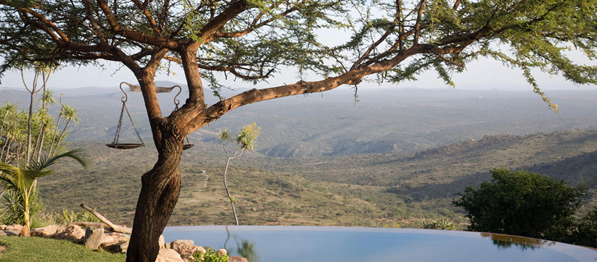 Ol Malo House was designed and built by the Francombe family. The hub of the house is a large and beautiful sitting and dining room – with open fireplaces – encircled by three en suite double bedrooms. Separate cottages create a further three double bedrooms: each private and comfortable cottage has arch windows and doors, en suite bathrooms, and decor inspired by the area’s wild landscape, local flora and the life and culture of the Samburu people. Lighting is handmade by the Samburu women creates a warm ambience and welcoming atmosphere. A flagstone path leads to a large open area overlooking the infinity pool and this incredible land’s wide-open vistas – perfect for al fresco dining. A barbecue area creates a wonderful place in which to end the day under a star-studded African sky.