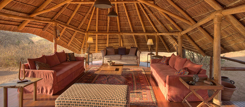The camp features ten beautifully furnished guest tents scattered along the marsh edge with excellent views over a permanent water source. Each tent is covered by traditional thatch and offers an outdoor shower plus indoor bathroom. Every evening, you can relax or read in the lounge and library tent, or enjoy sundowners at the fireplace.