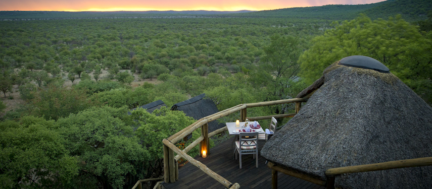 The well-established Ongava Lodge is situated along the southern boundary of Etosha National Park in the privately owned Ongava Game Reserve. Situated as it is close to the top of a hill, the vantage point is beautiful and overlooks a well-frequented waterhole and the plains beyond.