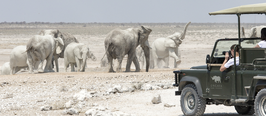 Ongava Lodge offers comfortable accommodation in 14 rock and thatch en suite chalets. There are impressive views over the camp’s waterhole from the main lounge and there is also an inviting pool to cool off in the heat of the day. Activities include game drives into Etosha, visiting the nearby hides, and nature drives and walks on the reserve. Ongava has resident white and black rhino, giving guests staying at Ongava the opportunity to see both species.
