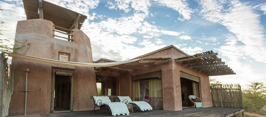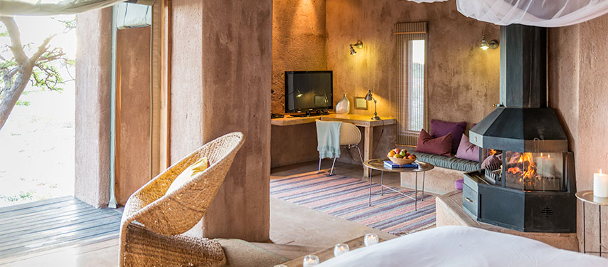 Onguma The Fort is dramatic & commanding, with iconic Moroccan style and elegance. The Fort is unlike any other, with probably one of the best sunset views in Namibia. Overlooking the beautiful Etosha Pan, accommodation consists of twelve Bush Suites as well as a Fort Suite, all with fire places for the winter months and air conditioning for the summer months. Each suite has an indoor and outdoor shower and views that will enchant. Large decks lead out from the rooms and many hours can be spent relaxing while gazing across the ever active waterhole.