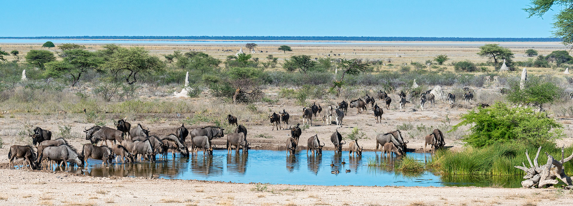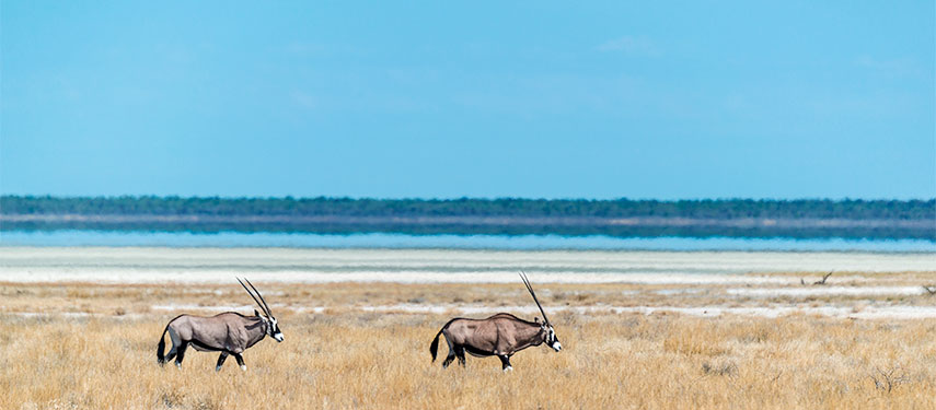 Africa’s largest saltpan, Etosha, is the result of a geological shift that dramatically changed the course of the Kunene River, away from where the pans are today. The pans, 120 km across and 55 km from north to south, were formerly an ancient lake. Today the Pan is mostly bone dry, the stark, parched white surface giving the Pan its Herero name‘Great White Place’.