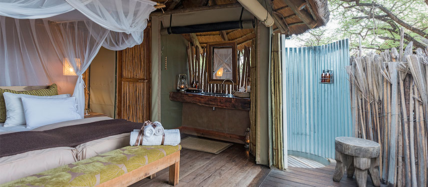Onguma Tree Top is a rustic safari on stilts, ideal for small parties travelling together. It is a small and intimate camp, designed for those travellers who would like to truly experience the bush in all its raw splendour. The camp is built on wooden stilts amongst the tree tops with full views over one of the most beautiful waterholes on Onguma Game Reserve.