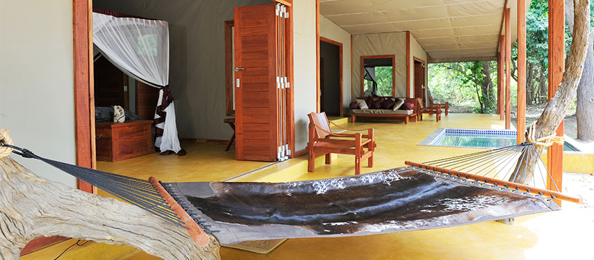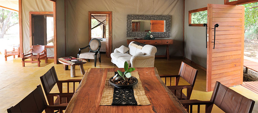 There are four tents within Potato Bush – three standard and one family, all shaded by large mahogany, sausage winter thorn and acacia trees. Each tent has an en-suite bathroom, large deck, private plunge pool and indoor and outdoor shower.  There is a large open plan living and dining area.