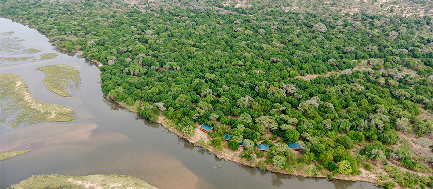 Nestled in over an expanse of open land and the waters of the Zambezi, sits Potato Bush Camp
