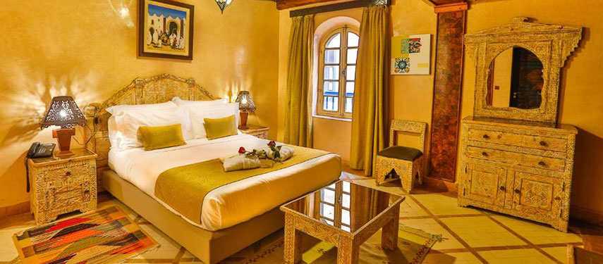 Step outside, and the UNESCO-listed medina of Essaouira is at your feet. Wander through its breezy, blue-washed alleyways, watch the fishermen at the bustling port, or ride horseback along the wild Atlantic beaches. As the sun sets, return to the riad’s rooftop terrace, where fresh seafood and ocean breezes set the stage for an unforgettable evening.