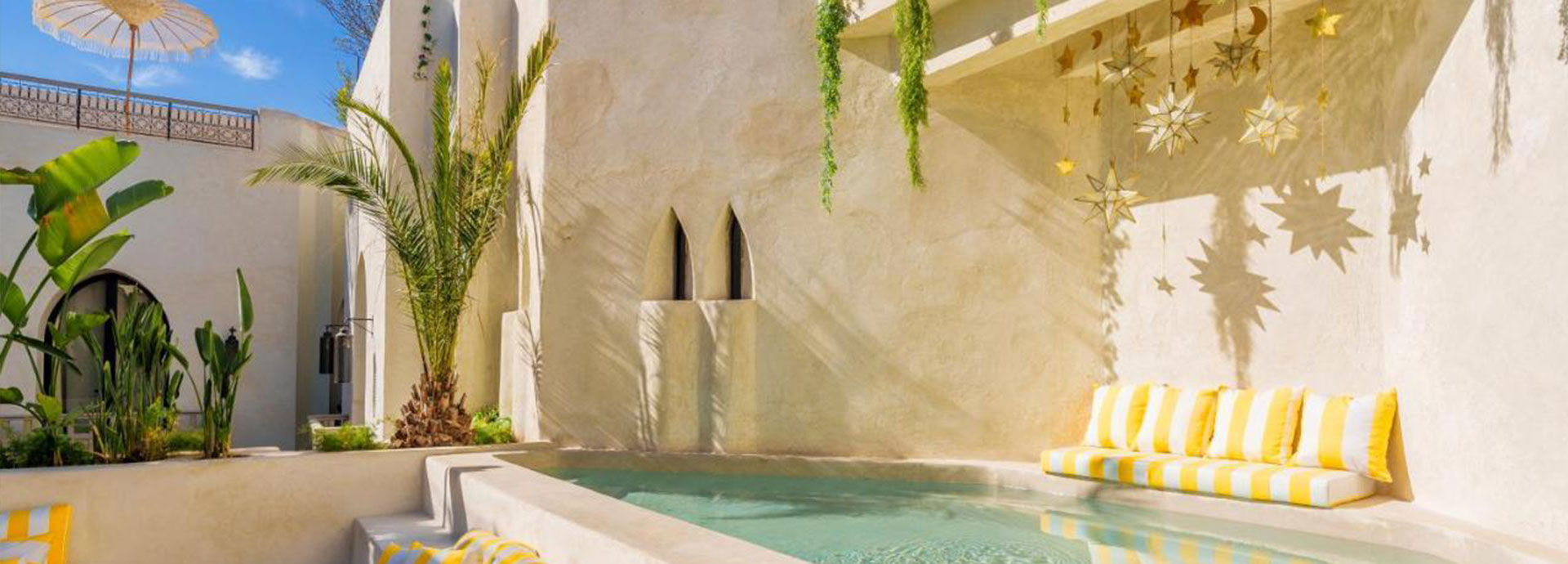Riad XO is a vibrant yet tranquil hideaway in Marrakech’s historic medina, blending Moroccan tradition with effortless modern style. Tucked away down a quiet alley, this intimate riad is a sanctuary from the city’s lively souks and spice-scented streets. The interiors are a celebration of texture and colour—handwoven Berber rugs, earthy Tadelakt walls, and curated design pieces that bring a fresh, bohemian energy to the space. The central courtyard, with its dappled light and inviting pool, is the perfect spot to pause between adventures.