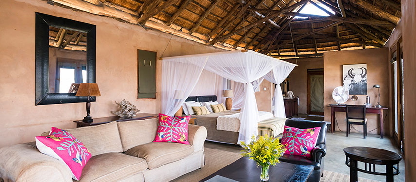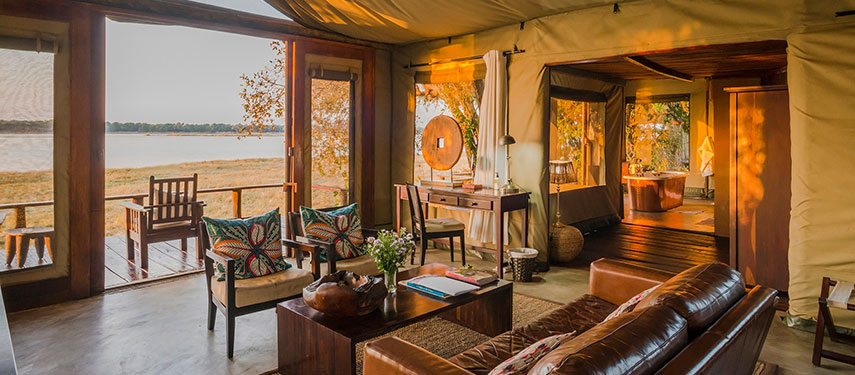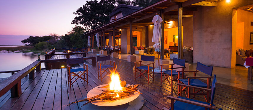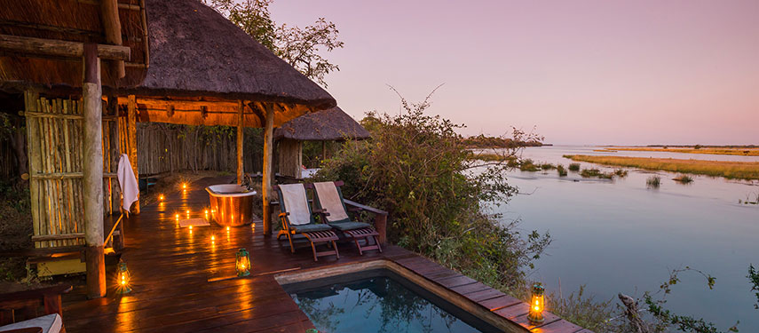 Spot a croc or a hippo in the river from the lounge at the Royal Zambezi