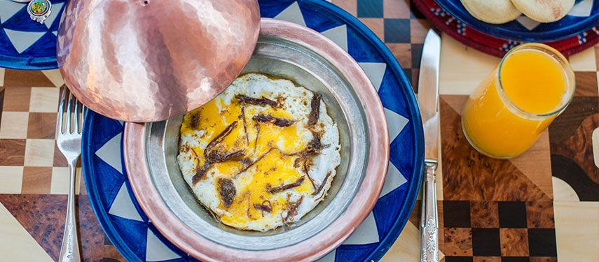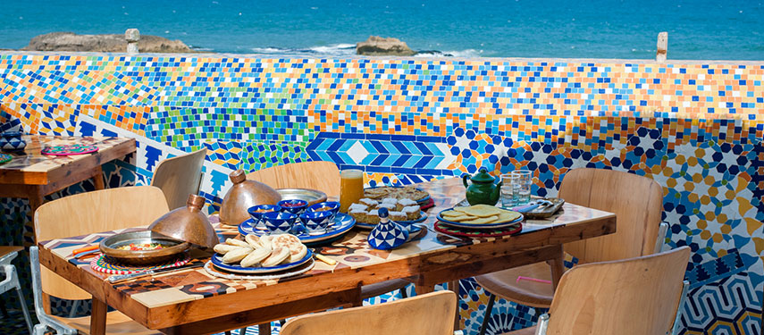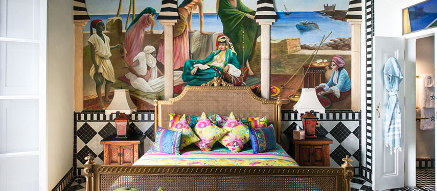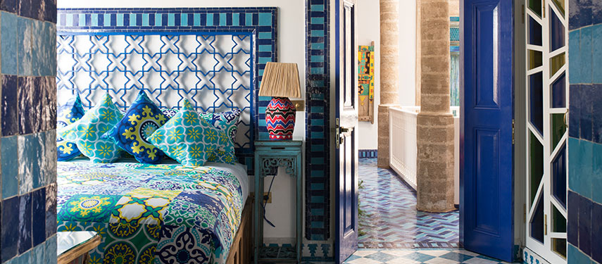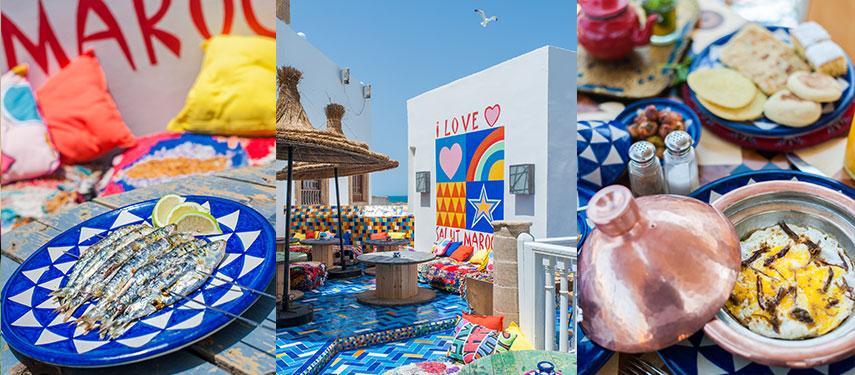 Salut Maroc is famous for its 11 stylish rooms, each of which is beautifully decorated with a fusion of Islamic patterns, vibrant colours and an eclectic mix of contemporary and antique furnishings. The restaurant sits on a breezy roof terrace complete with ocean views, and menus feature locally caught fish, meats barbecued on wood, big bowl salads and Moroccan specialties. It’s the perfect spot to enjoy a glass of champagne or cocktails as the sun sets over the water. Those in need of a little pampering will enjoy the hotel’s beautifully tiled hamman, where you can enjoy a traditional Moroccan scrub and massage by lantern light.