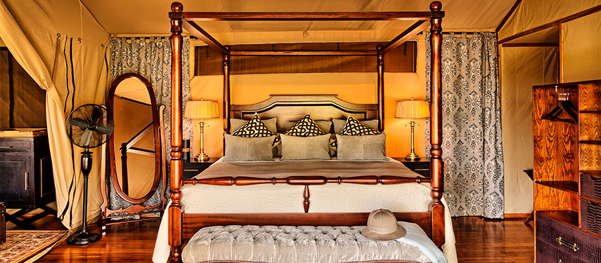 Sand River Masai Mara consists of 16 tents split over two separate but adjoining campsites, each with its own designated dining and lounge areas. The site is carefully positioned in a secluded and picturesque spot and harks back to the exclusivity of the opulent exploration camps of the late 1920s. Large tented suites are elevated on wooden decks and the décor features four poster beds, copper baths, travelling trunks and thick Persian rugs. The main areas replicates this style with an inviting lounge and plush dining space while the shared swimming pool is a picturesque place to lounge with a G&T and watch wildlife roam by. The overall effect echoes the countless Hollywood movies that have paid homage to the classic era of African adventure.