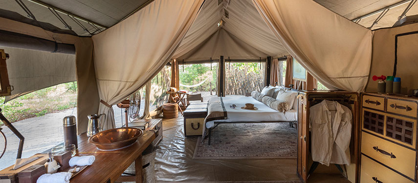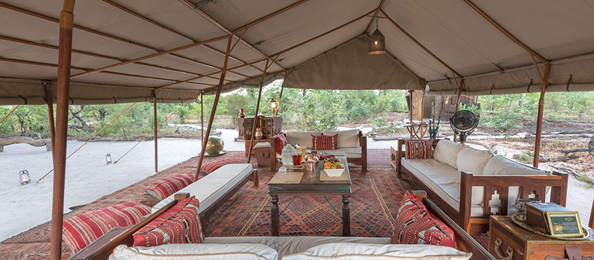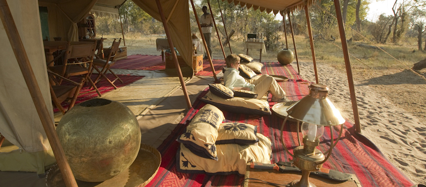 Relax at your elegant under canvas tented accommodation at Selinda Explorers Camp in Botswana