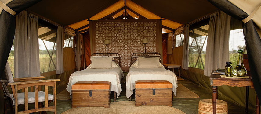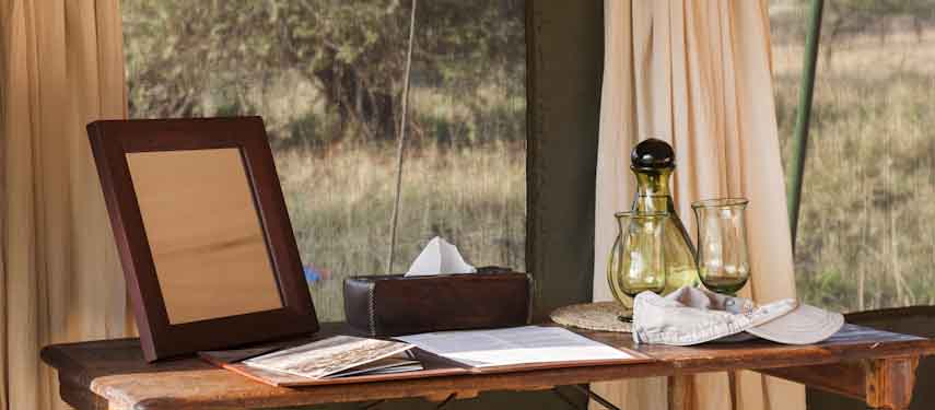 Serengeti Safari Camp has just six open-plan walk-in Meru tents, each with an ensuite bathroom at the rear. Eco-flush toilets, safari-style bucket showers, a wash basin with cold running water, and hot water delivered as and when you desire, create a superb level of comfort in this remote location. Rechargeable lights and traditional hurricane lamps are used within communal areas and private tents to illuminate the dark Serengeti nights.