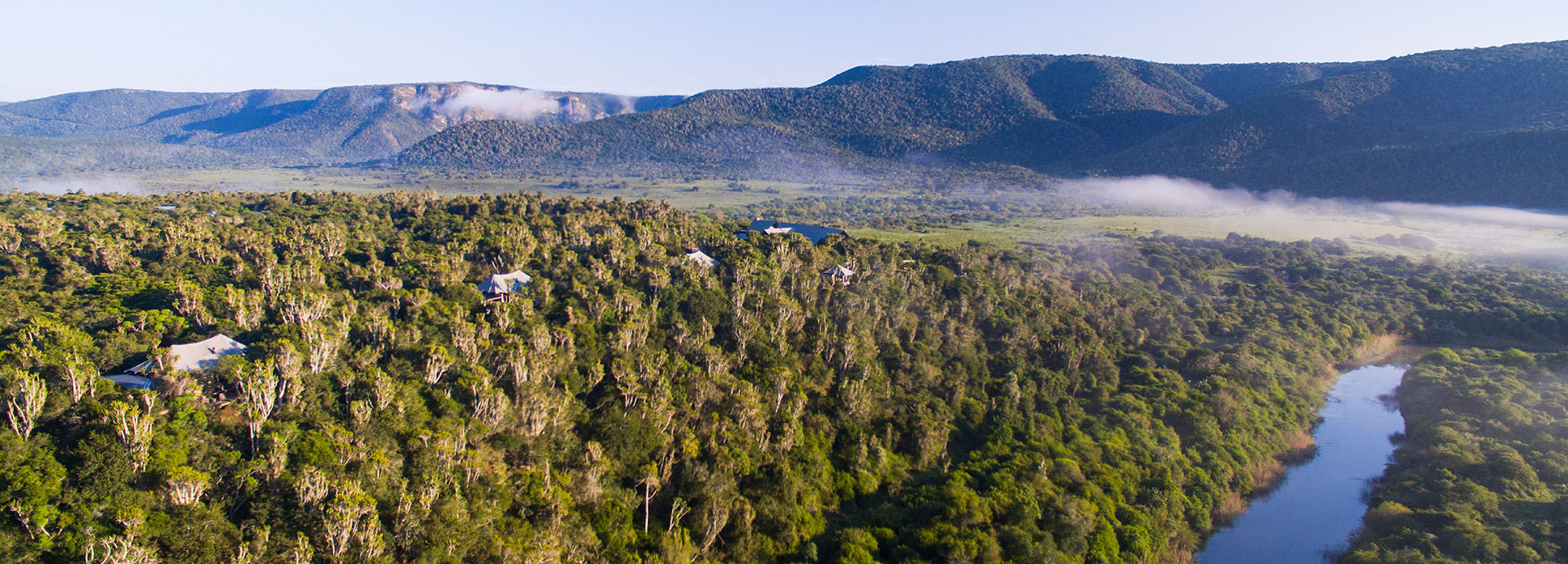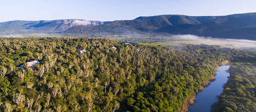 Aerial views of Settler's Drift and the surrounding Kariega Wilderness