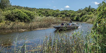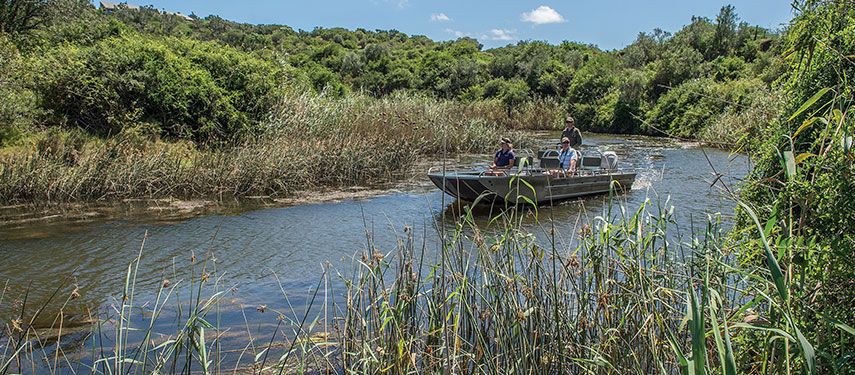 Kariega Private Game Reserve boasts 10,000 hectares of rich bushland, home to the Big 5 as well as hippo, hyena, giraffe, zebra, wildebeest and three species of eagle. Twice daily game drives will ensure some spectacular encounters while river cruises, fishing, canoeing and walking safaris are also available and come highly recommended.