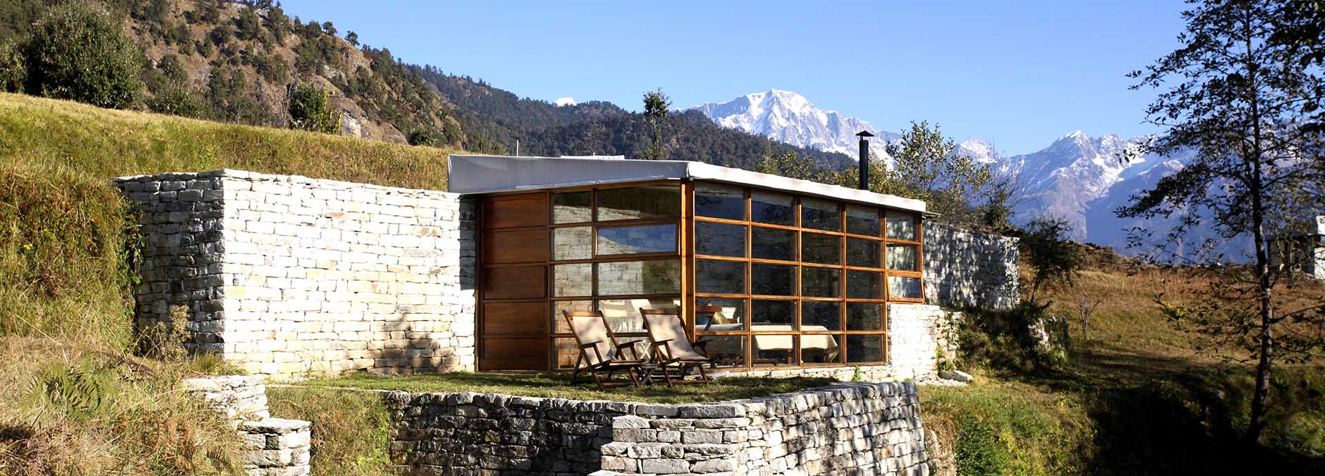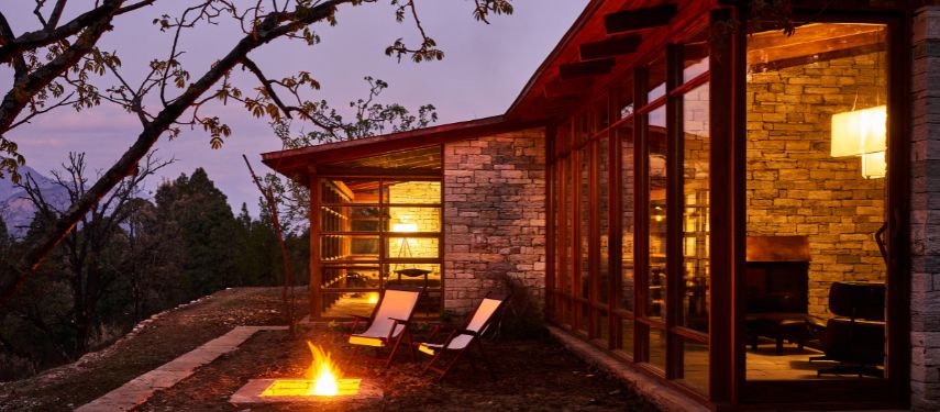 Perched high in the remote Kumaon region of Uttarakhand, Shakti Prana (meaning breath in Sanskrit) is the reincarnation of its award-winning luxurious mountain outpost, 360 Leti, which was dismantled stone by stone, slate by slate, transported and reassembled in a less-populated region across several mountain peaks.