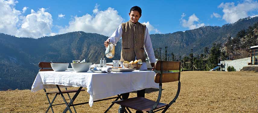 Days at Prana unfold gently, guided by the rhythms of the mountains. Walk with expert guides through rhododendron forests, across meadows and into high ridges; practise yoga or meditation on elevated platforms with panoramic views; enjoy contemplative moments in the sauna perched on a cliff edge; or visit nearby hamlets to meet local villagers. Evenings invite firepit gatherings under a blanket of stars, while the serene environment encourages deep rest and reflection far from the bustle of everyday life.