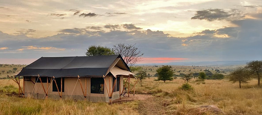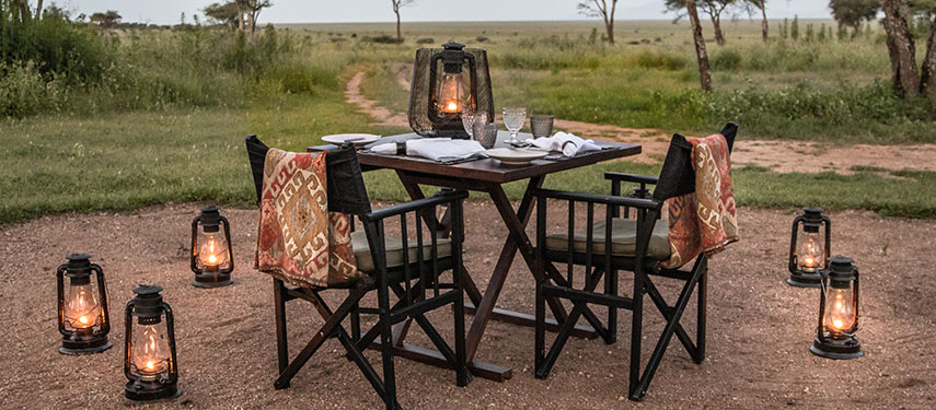 Between game activities, the camp offers a warm, welcoming atmosphere. Meals are generous and unfussy, served communally beneath open skies or by lantern light, while evenings are spent sharing stories around the campfire as the sounds of the Serengeti drift through the darkness.