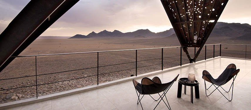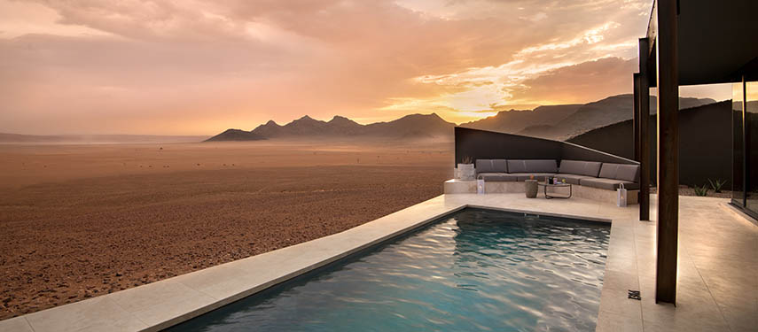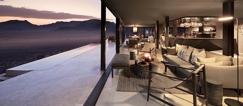Nestled deep in the heart of Namibia’s ancient Namib Desert in Southern Africa, the lodge is a secluded and serene oasis that overlooks awe‐inspiring dunes and stony outcrops. A world of vast spaces, endless horizons and rugged mountain heights, the utter tranquillity and extraordinary clarity of light make this area one of Africa’s most compelling landscapes.