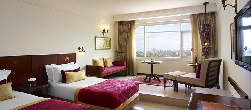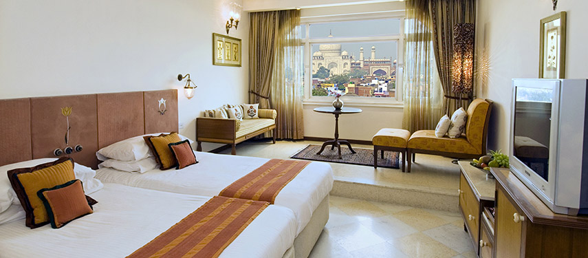 Set amidst six acres of landscaped gardens, the Tajview Hotel in Agra offers superior rooms designed with a mix of contemporary and Mughal design, all with magnificent views of the Taj Mahal.
