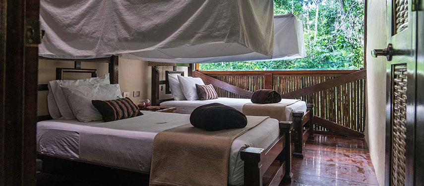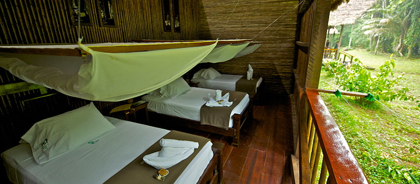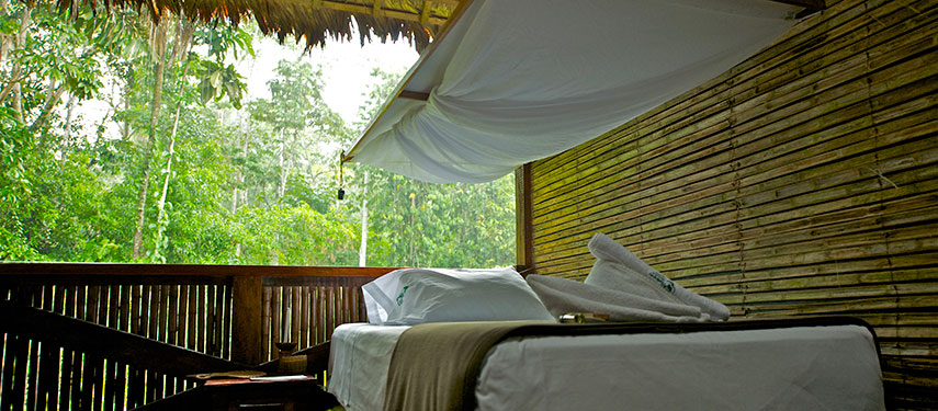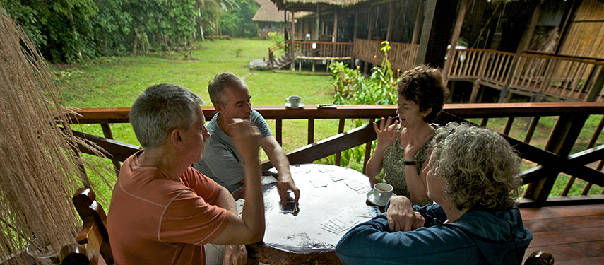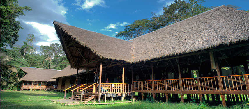 The Tambopata Research Centre is a comfortable 18-bedroom lodge and is home to both tourists and researchers. Because of its remote, uninhabited wilderness location, the lodge infrastructure is of a small scale. Guestrooms are built using natural materials, and have an open side providing views to the surrounding forest with bathrooms on a shared basis. The main dining and lounge area is a great spot to meet with researchers, biologists and ecologists and learn about the conservation research that takes place here.