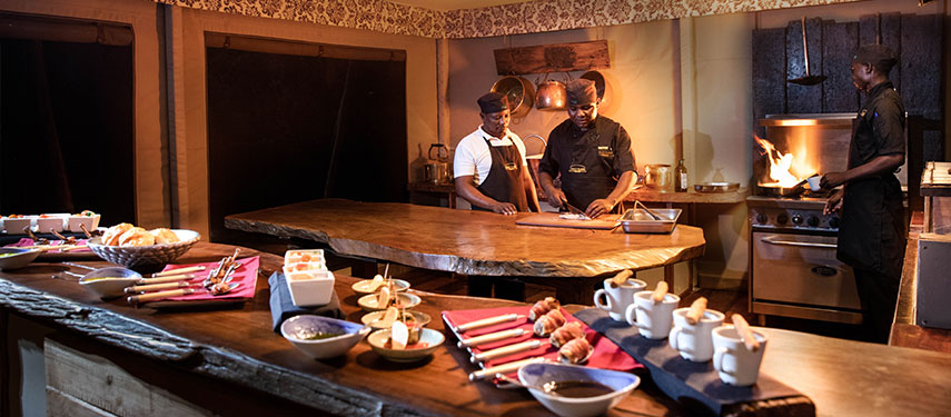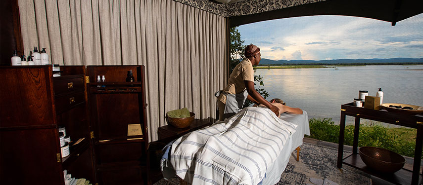 It sits comfortably among the best accommodation offerings available, and is a proud member of Relais & Châteaux – the only Zimbabwean safari camp currently with this honour. Each of the guest suites has its own private indoor lounge area, outdoor swimming pool, exercise bikes on an expansive veranda, and private outdoor dining area. Stunning, handmade bathtubs plus indoor and outside showers invite you to unwind in the wilderness and sink into a sense of ‘home’. The beautiful 2‐bedroomed Zanji Suite comprises two suites flanking a shared lounge, dining area and pool, making it ideal for two couples or families travelling together. The camp’s central area features a wine cellar and interactive 5‐star kitchen feature in stunning stone design, and the spa sits discreetly behind beautifully weathered Zanzibar doors.