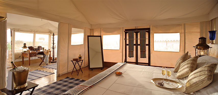No expense has been spared. Tents are gracefully set amidst greenery making them a private haven. After a day exploring the vast desert wilderness enjoy sundowners on the dunes and dinner either in the bush (impossibly romantic) or the dining tent serving sumptuous local delicacies and international cuisine.