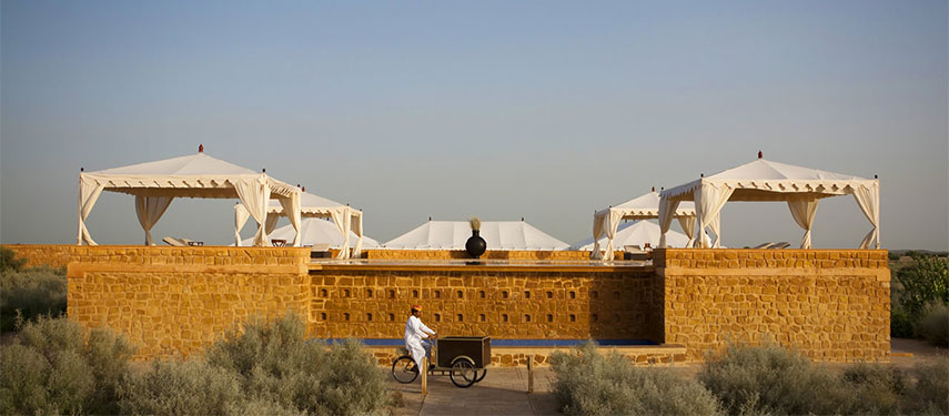 The incredibly luxurious and immaculate desert camp, The Serai, lies in the middle of scrub and farmland in its own little oasis 45 minutes away from the craziness of Jaisalmer.