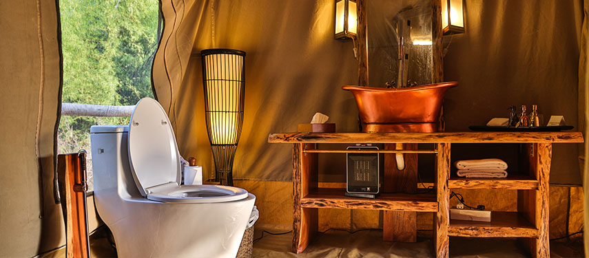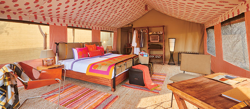 With just a handful of luxurious tented suites, the camp is wonderfully quiet and exclusive. Each tent is beautifully styled with campaign style furniture and hand printed fabrics, and every one enjoys a private sit-out, en suite bathroom with running water and a personal butler service to cater to your every need. Thoughtful touches, such as Ayurvedic toiletries and bedroom slippers, underline careful attention to detail. Meals take place either in the elegant dining room, al fresco on the terrace, or out in the wilderness at any number of atmospheric pop up locations. Menus are multi-cuisine, but always feature plenty of fresh produce.