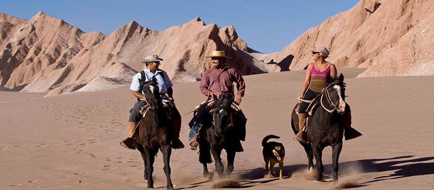 Tierra Atacama offers plenty of was to explore this fascinating desert area—the driest on Earth. Choose from hiking, biking, 4-wheel drive excursions, horse riding and volcano climbing. At daybreak watch the Tatio geysers spout gusts of steam and boiling water high into the air, feel the salt crack under your feet at the world’s third-largest salt flat and see pink flamingoes mirrored in intensely blue lagoons. Ancient petroglyphs carved in stone, picturesque adobe villages, blissful thermal springs, magnificent sunsets over desolate dunes and sharp cliffs, and clear desert night skies all add to the appeal of this remarkable destination.