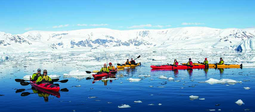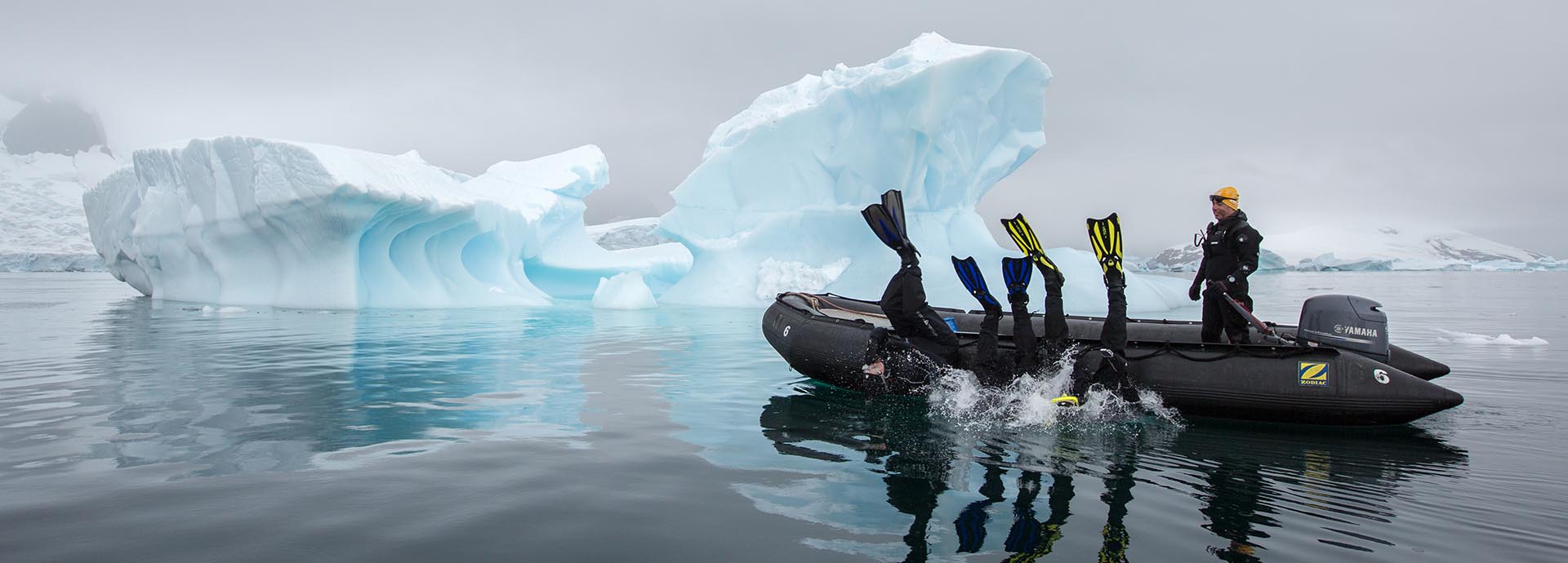 - Zodiac-cruise through glassy waters and gaze at the iridescent blues of gleaming icebergs