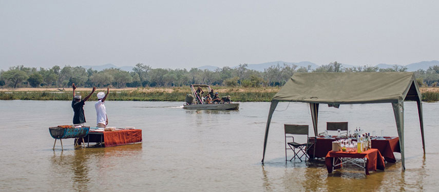 Continue your explorations of the Lower Zambezi in the company of experienced guides, and if you wish, join a special river lunch set up with your toes dipped into the cool waters of the Zambezi! Watching hippos cruise past as you tuck into your tasty BBQ lunch and cold drinks is a unique treat!
