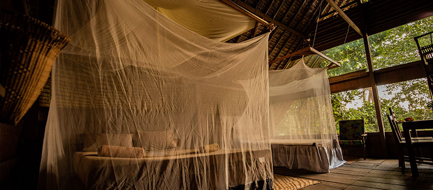 Lango’s six guest rooms are raised to the level of the gallery forest and boast incredible views out onto the open marshy bai in front of camp – one of the most arresting views of any camp in Africa. A real highlight of your stay is the chance to explore the Lekoli and Mambili Rivers by motorboat or kayak, which is an opportunity not to be missed.