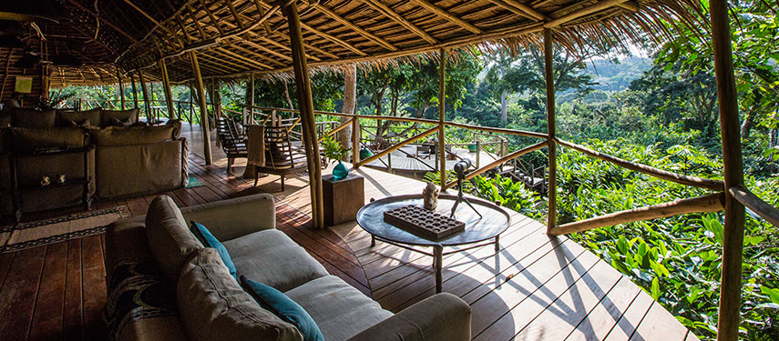 Ngaga Lodge overlooks a beautiful open glade within primary forest that is home to several groups of western lowland gorillas. Ngaga is truly gorilla central and a focal point for world-class research as well as unforgettable primate encounters. From the six elevated guest rooms, wraparound walkways allow you to peer directly into the forest canopy. ... Read more