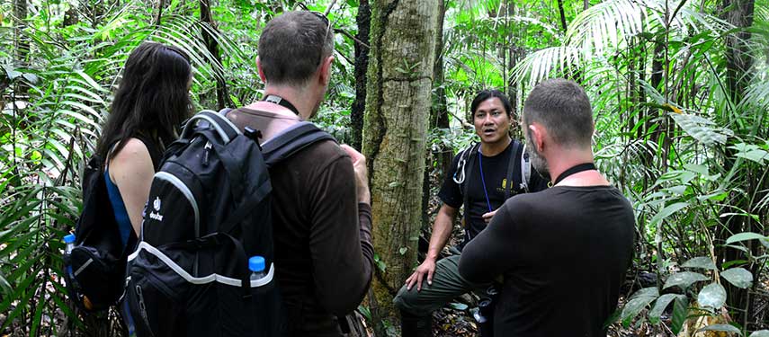 Relax in the morning before disembarking to explore the forest and its myriad of animals and plant species endemic to the Amazon basin. In the afternoon visit a canopy tour and take in its views before in the evening taking a canoe onto the river to search for black caimans by flashlight.