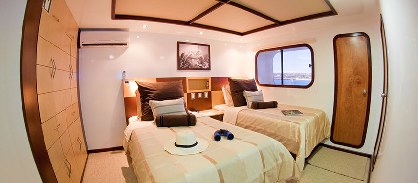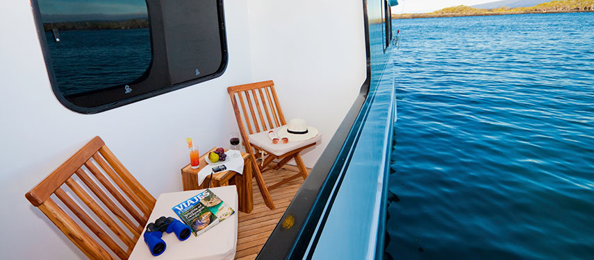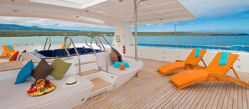 The 16-guest M/C Cormorant brings the best in catamaran design to the Galápagos Islands. The modern and ample accommodation includes Jacuzzi, huge sun deck and a private balcony for each of the spacious staterooms.