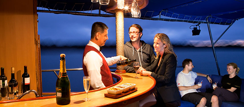 Arrive San Cristobal and be met by the crew from Galápagos Sky. Once on board there is a mandatory safety briefing and drill and then cruise to Los Lobos for a check-out dive where you may encounter sea lions and fur seals. Enjoy sunset cocktails and appetizers on deck and circumnavigate the amazing twin-rock formation of Kicker Rock, home to Blue-footed boobies, masked boobies and the magnificent frigate birds.