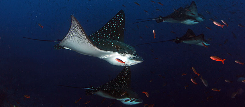 Spend the next three days diving the legendary islands of Wolf and Darwin, one of the best dive sites in the world. Whale Sharks are common here, particularly from May through November. At the Northern Arch at Darwin, you will see Hammerhead sharks either individually, in small groups, or large schools. Bottlenose dolphins are not uncommon. The reef contains many warm water varieties of fish found nowhere else in the Islands and is the most consistent place to see hammerheads.