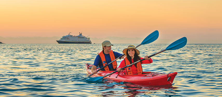 A true expedition ship, National Geographic Endeavour II is equipped with cool tools for exploration that help you experience the full range of wildness in Galápagos. Explore the waters and beach coves by zodiac, poke into waterline caves aboard a kayak, snorkel among vibrant sea gardens with playful sea lions, and paddleboard amongst turtles plus much more. Enjoy the magic and mystery of a cruise to the Galápagos Islands – the best islands in the world.