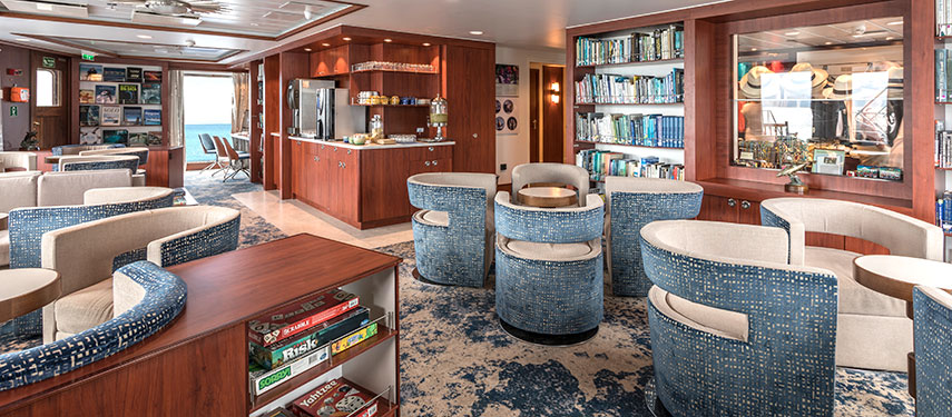 The ship caters for a sociable mix of families, friends, couples and solo travelers. Her public spaces are gracious and comfortable, with a dining room that easily accommodates all guests at once for a single seating, and a new forward lounge features a redesigned presentation space that offers all aboard chance to participate in evening Recaps or special guest events. Life aboard is casual in every respect. There is no need for formal clothing, although you are welcome to bring casually festive attire for the fun of it. And you’ll find shipboard services like laundry make packing and travelling more convenient.
