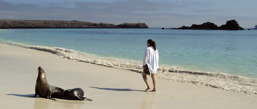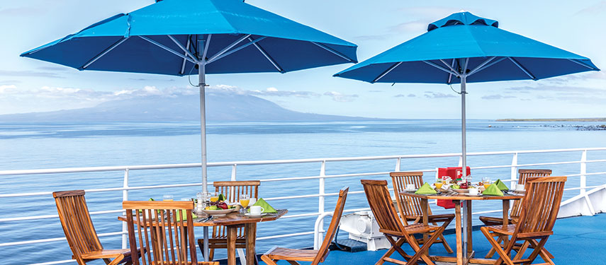Isabela: A small black sand beach offers wonderful morning swimming. Enjoy a more challenging hike over rugged shoreline and a shorter walk within an iguana colony. Kayaking and deep-water snorkeling opportunities are on offer. Fernandina: This is the youngest island in the Galápagos and one of the most pristine tropical islands left on earth. Look forward to hikes over relatively recent lava flows, and spot marine iguanas, flightless cormorants, and Sally Lightfoot crabs. Floreana: Snorkel among sea lions in the clear waters off Champion Islet. We may also find flamingos, pintail ducks and various shorebirds. Hike to a pristine white-sand beach, a favorite nesting site for sea turtles. Española: The exclusive home to waved albatross (seasonal) and particularly colorful marine iguanas, Española is also a paradise for Darwin’s finches, sea lions galore, and the famous blue-footed boobies. Snorkel and stroll along the island’s lovely beaches.