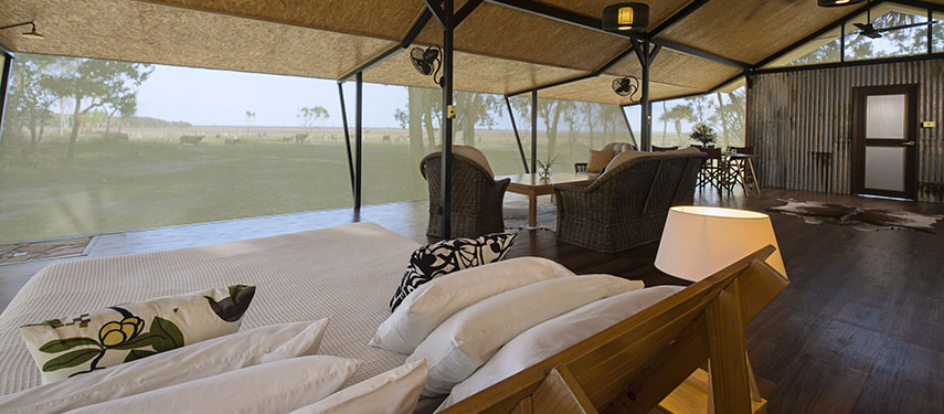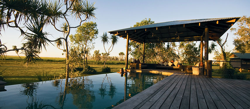For the second part of your journey you’ll head to Bamurru Plains – a safari style lodge on the edge of Kakadu’s Mary River floodplains. Here you can explore the landscape on foot, by 4×4 or by fan boat, then retire to your luxurious accommodation to lounge in the pool and watch the wildlife amble past before dining on a gourmet menu of native ingredients.