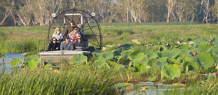 Transfer to the stunning wilderness lodge, Bamurru Plains, on the edge of the Mary River floodplains. Explore this region of exceptional natural beauty and unique biodiversity on an airboat skimming through a wilderness of clear water and tall grass, or on a 4WD adventure or walking safari through the savannah searching for wallabies, buffalos and dingos in the company of an expert guide. Return to the lodge each night for gourmet dining and pure bush luxury.