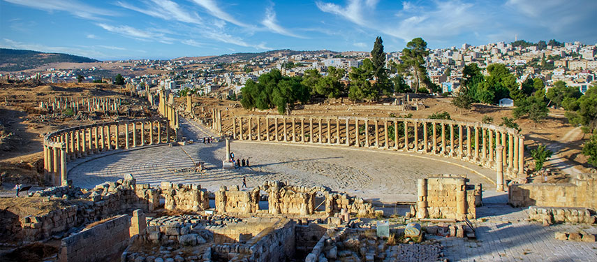 This morning we drive 60 kilometres north of Amman through the Ajlun mountains, famous for their lush vegetation, olive groves, and thick green pine forests. winding our way through this pretty scenery, we will reach the ancient Greco-Roman city of Jerash – Jordan’s largest and most interesting Roman site.