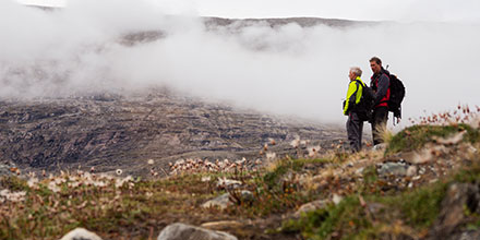 Explore Scoresbysund, the world’s largest fjord and a favourite hunting ground of the local Inuit. Massive glaciers flow into this fjord, the birthplace of hundreds of majestic Greenland icebergs. It is a spectacular place that simply needs to be seen to be believed. North of Scoresbysund lie Kong Oskar and Kaiser Franz Josef fjords, two of the most significant fjord systems in Greenland, each one encompassing several smaller fjords and sounds. Thanks to the fertile volcanic soil and the surrounding mountains offering protection from strong winds, the area is rich in wildlife.