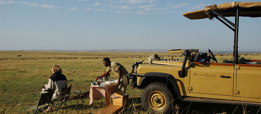 Today you will join another charter flight, flying toward the northern boundary of the park, to spend 3 nights at Sayari camp located just a couple of kilometres from the famed Mara River. The camp is in a prime location to take advantage of the migration as the wildebeest attempt to cross the Mara River, full of hungry crocodile. Beside the wildebeest herds there’s lion, cheetah, leopard, zebra, elephant, hyena, and various antelope species, along with 500 species of local and migratory birds. You will enjoy 4WD game drives, guided safari walks as well as the opportunity to visit local communities, if that is of interest.