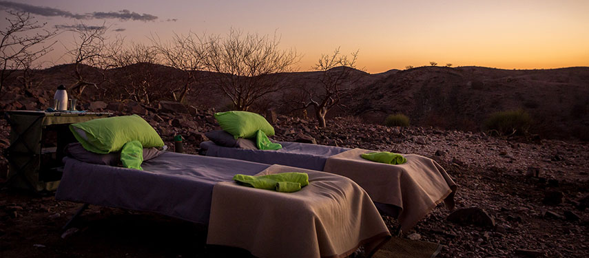After breakfast, you will depart with your guide to the heart of Namibia, Damaraland, travelling through farmlands and small towns such as Tsumeb, Otavi and Outjo. Your full day scenic transfer with picnic lunch culminates with your arrival at your exclusive camp, Huab Under Canvas, in time for sundowners and a three night stay.