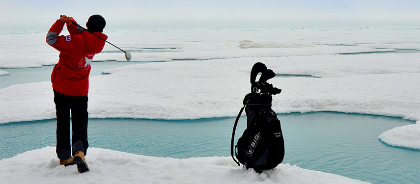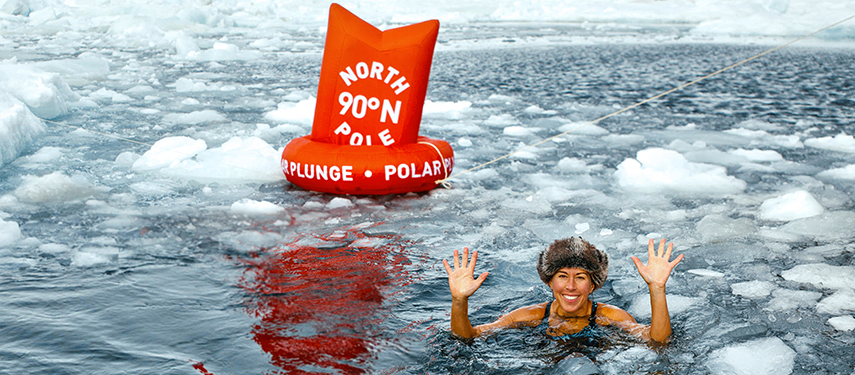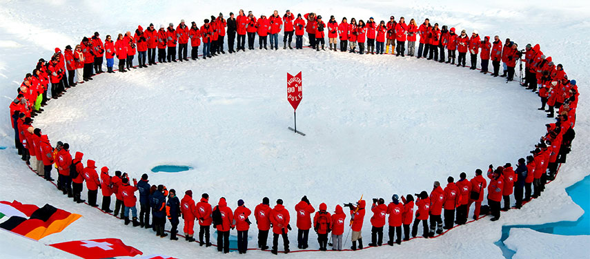 Now is the time to experiencing the long-anticipated thrill of standing at the top of the world. Join hands with your fellow passengers and literally walk around the world. You will be treated to a barbeque meal on the ice and have the chance to take a plunge into the icy water!