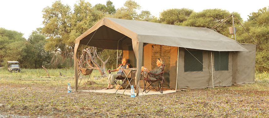 Whilst travelling across the most popular wildlife regions of Botswana you will be accommodated in spacious (3m x 3m), walk-in wilderness safari tents with large breezy windows, and a shaded veranda. The tents are fully furnished and offer proper beds complete with comfortable mattresses and quality linen. Each private en suite ‘bush bathroom’ includes a hot water bucket shower, ecological long drop toilet and hand basin.
